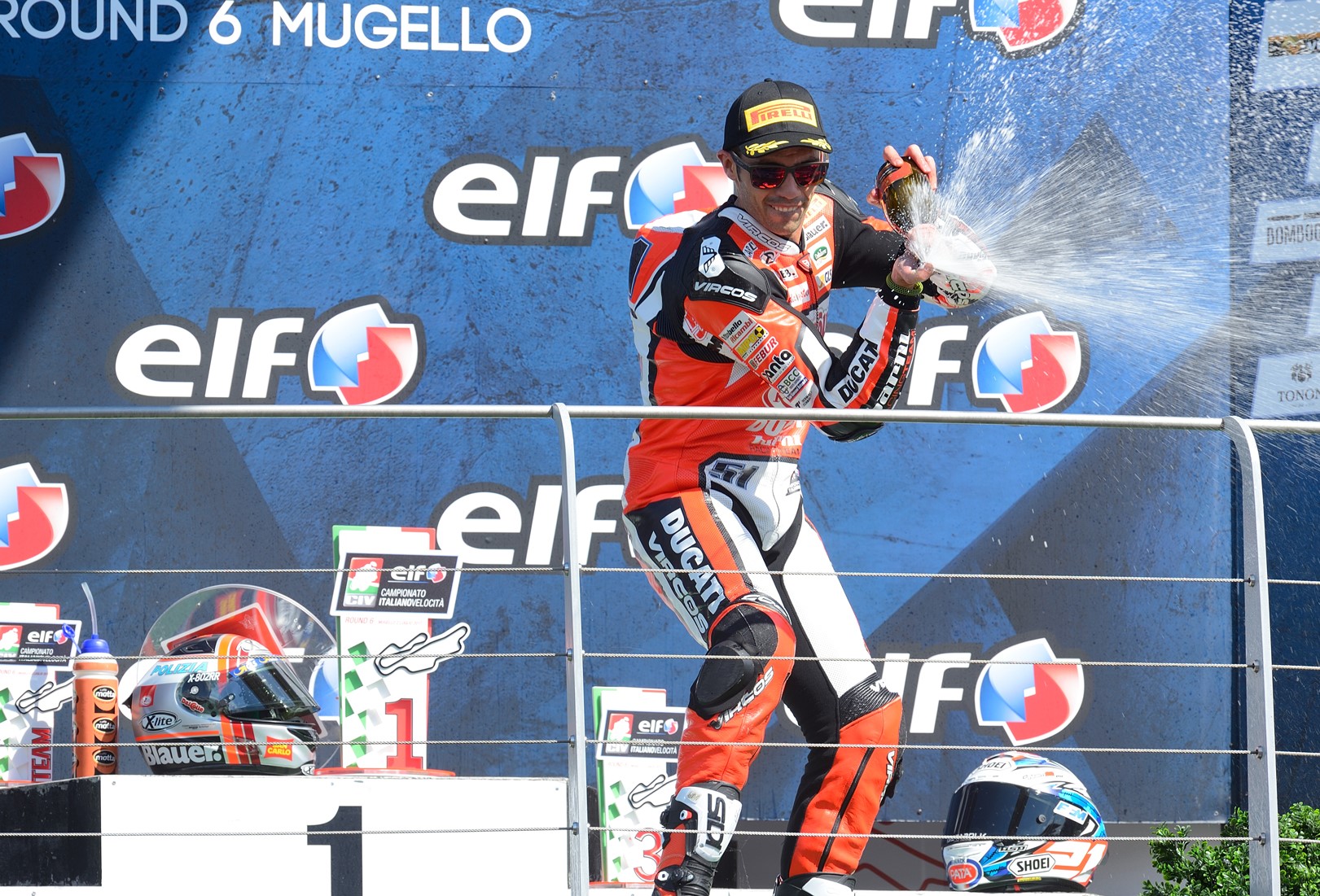 Barberino del Mugello, 2 luglio 2017. Sesta vittoria consecutiva, campionato ipotecato. Il pilota del Barni Racing Team Michele Pirro domina anche gara 2 al Mugello, terzo appuntamento dell'Elf CIV Superbike, e già al giro di boa della stagione chiude virtualmente i giochi per la vittoria del campionato italiano velocità Superbike. A far gioire il Barni Racing Team è anche Samuele Cavalieri, splendido sesto dopo una gara a ridosso del terzetto di testa.