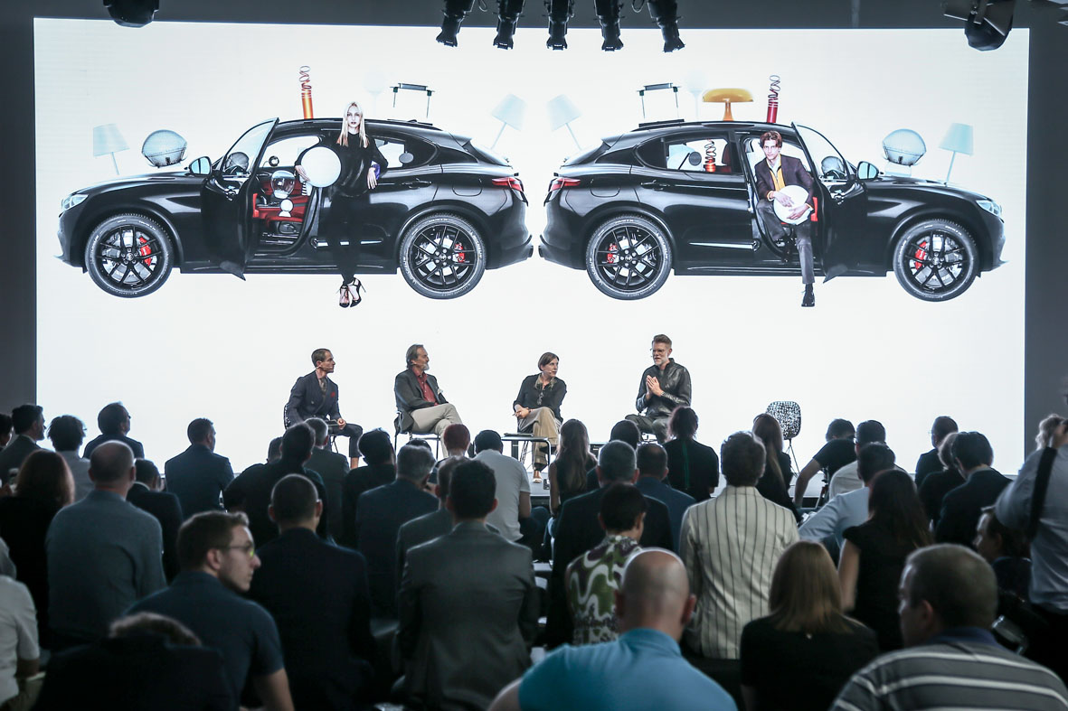 Al termine dell'appassionante talk show, è stato possibile ammirare Giulia, Stelvio e Giulietta B-Tech, anche nella ricostruzione del set di Giovanni Gastel con oggetti e luci, accedere a una virtual room dove apprezzare i modelli in 3D e toccare con mano i materiali che hanno ispirato le scelte di stile converse nella gamma B-Tech.