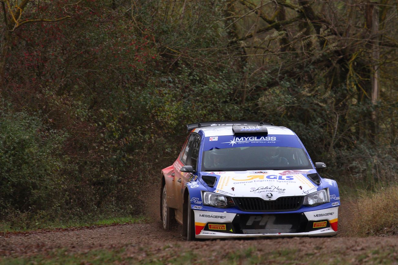 Al comando c’è il sammarinese Daniele Ceccoli, in coppia con Capolongo, su una Skoda Fabia R5. Attuale leader della classifica di Campionato, quindi in predicato per incamerare “lo scudetto”, Ceccoli si è aggiudicato il miglior tempo sulla prima prova, per poi cedere il passo per 2”5 al veneto Edoardo Bresolin (Skoda Fabia R5, con Pollet alle note) sulla seconda e conclusiva della giornata. Il computo finale di questa prima porzione di sfide vede dunque al comando Ceccoli con 1”1 sul Campione Italiano Paolo Andreucci, insieme ad Anna Andreussi (Peugeot 208 T16 R5) e terza è l’accoppiata trevigiana Trentin/De Marco (Skoda Fabia R5) a 2”4, anche loro “in odore” di titolo.
