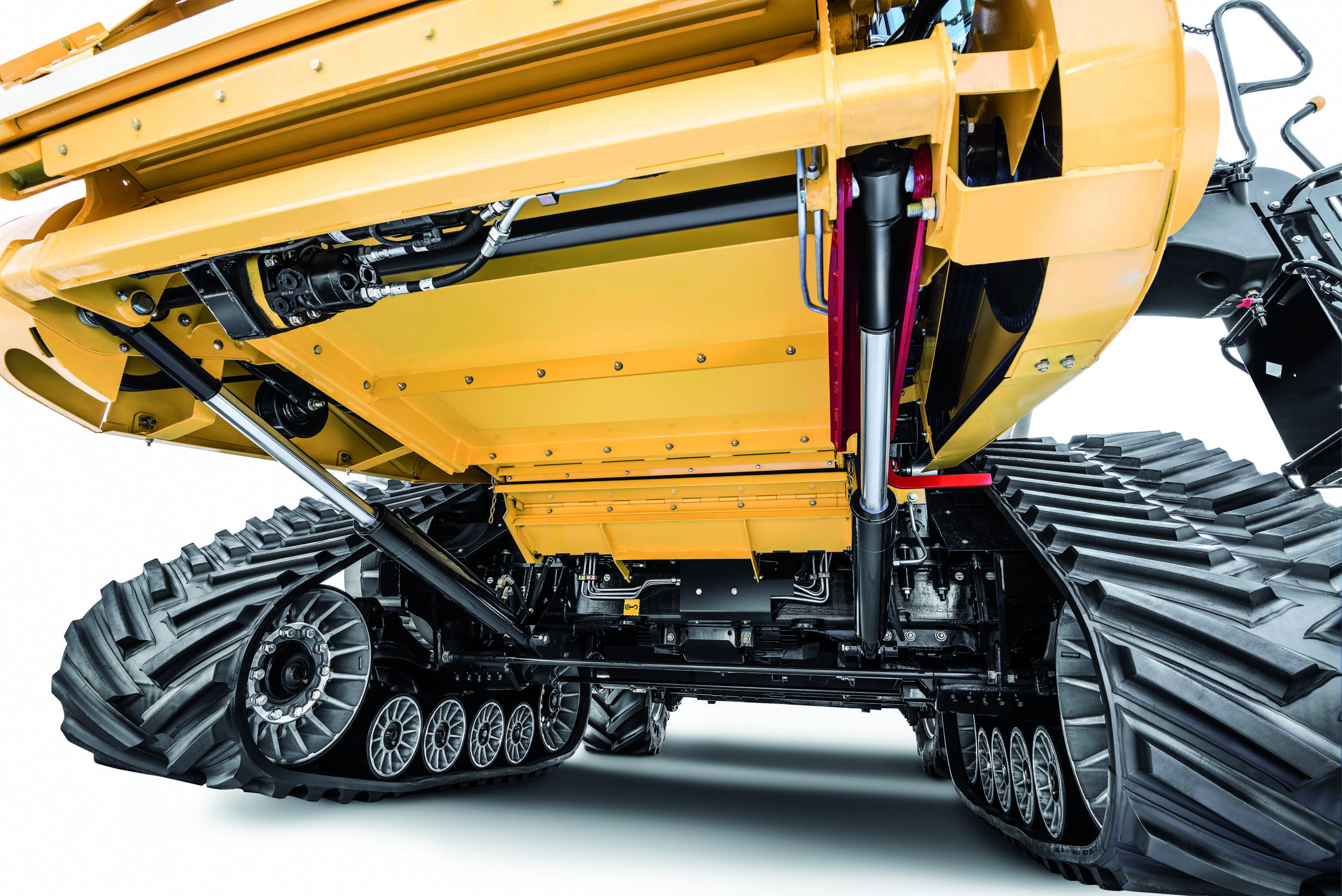 Il sistema di inversione del senso di rotazione del Dynamic Feed Roll (DFR), costituito da un cilindro idraulico, un sistema a cricchetto e una ruota dentata sull'albero del rullo DFR, sblocca il DFR facendo oscillare il tamburo. Quando si verifica un ingolfamento e la velocità del tamburo scende sotto i 100 giri/min, le funzioni di trebbiatura e alimentazione della mietitrebbia si disattivano automaticamente. L'operatore deve solo fermare la mietitrebbia e attivare la procedura di inversione sul monitor IntelliView. Il canale elevatore si inverte per svuotare la relativa catena per tutta la lunghezza, mentre il cilindro idraulico e il sistema a cricchetto invertono il tamburo del DFR. La procedura di inversione è completa quando il materiale è stato rimosso e il circuito idraulico non incontra resistenza. Il canale elevatore si inverte di nuovo per svuotare la relativa catena per tutta la lunghezza. Completata questa operazione, l'operatore può reinserire i rotori e il canale elevatore per riprendere la raccolta. In tutto l'operazione per rimuovere l'ingolfamento richiede circa 10 minuti.