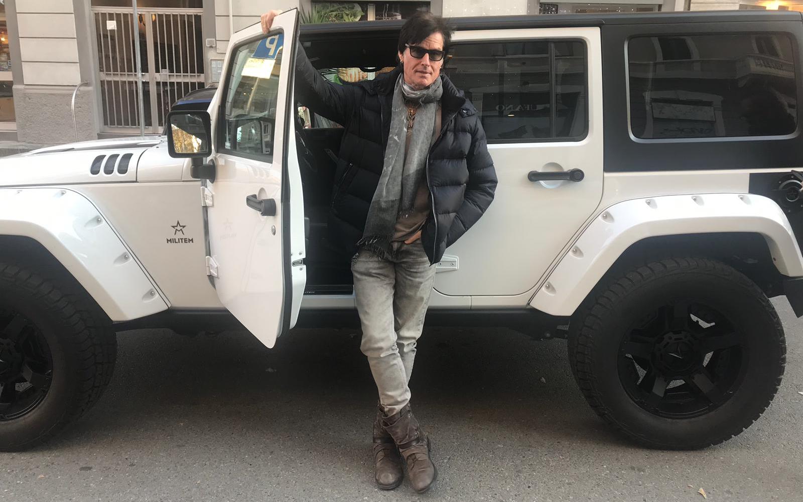 Per spostarsi durante le date del suo tour in Italia, durante il periodo delle festività, ha scelto il MILITEM JIII nella livrea bianca con hard top nero e interni neri.
