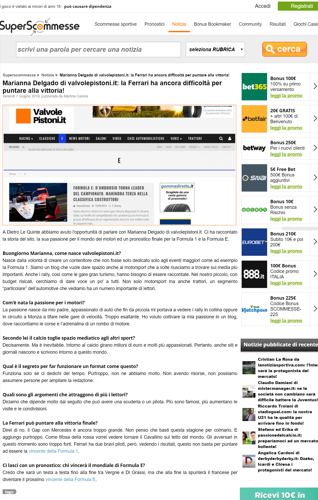 Pubblichiamo l'intervista che il sito Superscommesse ha voluto riservare alla nostra redazione. Per leggere l'intervista integrale potete cliccare al seguente link.
