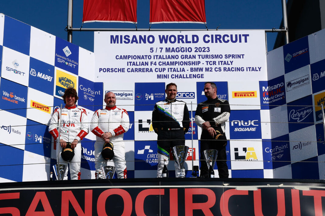 “È stato un grande weekend – ha commentato Fascicolo – il team ha compiuto un lavoro straordinario e mi ha aiutato a trovare il feeling con la macchina. Devo ringraziare in primis tutta la squadra per avermi facilitato il compito. La vettura ha un gran bel passo e finalmente ho iniziato a fare amicizia con lei… Siamo riusciti a cogliere due vittorie nelle due gare e questo era importante per iniziare bene il campionato e rompere il ghiaccio. In Gara 2 la soddisfazione è stata maggiore in quanto arrivata in rimonta nonostante i 5 secondi di handicap che abbiamo ricevuto dopo il successo nella prima prova. Piccolo brivido nella seconda corsa quando nel tentativo di sorpasso, ho spinto al massimo la vettura e mentre tagliavo il cordolo sono finito in testa coda, riuscendo a riprendere il controllo e a terminare per primo sotto la bandiera a scacchi. Il prossimo impegno sarà sul circuito di Monza: restiamo in attesa di capire quali saranno le decisioni in merito al Balance of Performance. Speriamo che non siano disposizioni troppo penalizzanti per noi”.