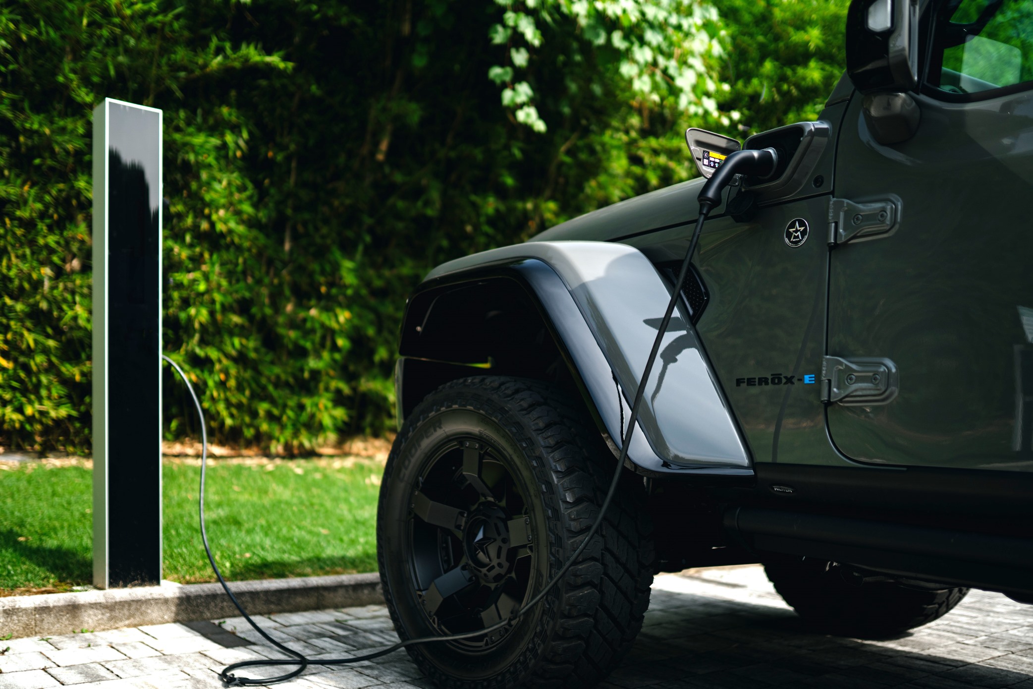 MILITEM FERŌX-E è ingegnerizzato sulla base del Wrangler 4xe, ed eroga una potenza complessiva di 380 CV e 637 Nm di coppia, già fruibile ai bassi regimi. Dispone del motore 2 litri turbo a benzina di ultima generazione, abbinato a due generatori elettrici con pack batteria ad alta tensione.