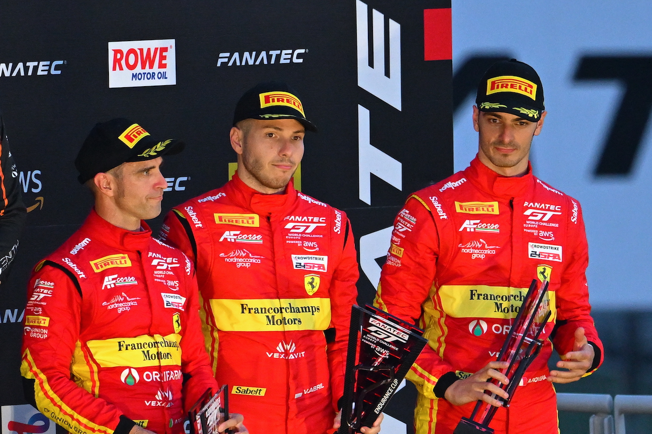 Monza, 22 settembre 2024. La 3 Ore di Monza, tappa casalinga del GT World Challenge per Alessio Rovera, termina con la conquista della pole position in prova a fronte di 52 auto iscritte, del terzo gradino del podio in gara e della seconda posizione della classifica della ultra-competitiva serie endurance internazionale. Il 29enne pilota della Ferrari era schierato al via insieme ai compagni di squadra Alessandro Pier Guidi e la new-entry Vincent Abril al volante della 296 GT3 numero 51 preparata da AF Corse – Franchorchamps Motors. Nella qualifica di domenica mattina ha tutto girato alla perfezione per il trio ferrarista e proprio il driver varesino nel pomeriggio ha poi preso il via della corsa dalla pole position, mantenendo la prima posizione dalla partenza fino al primo pit-stop per il cambio pilota, quando gli è subentrato Abril. Nella seconda metà della corsa, però, un paio di ravvicinate neutralizzazioni con safety car ha condizionato le varie strategie adottate dalle squadra e al termine dello stint finale di Pier Guidi l’equipaggio del team italo-belga ha concluso al traguardo in terza posizione, a pochi decimi dai vincitori.