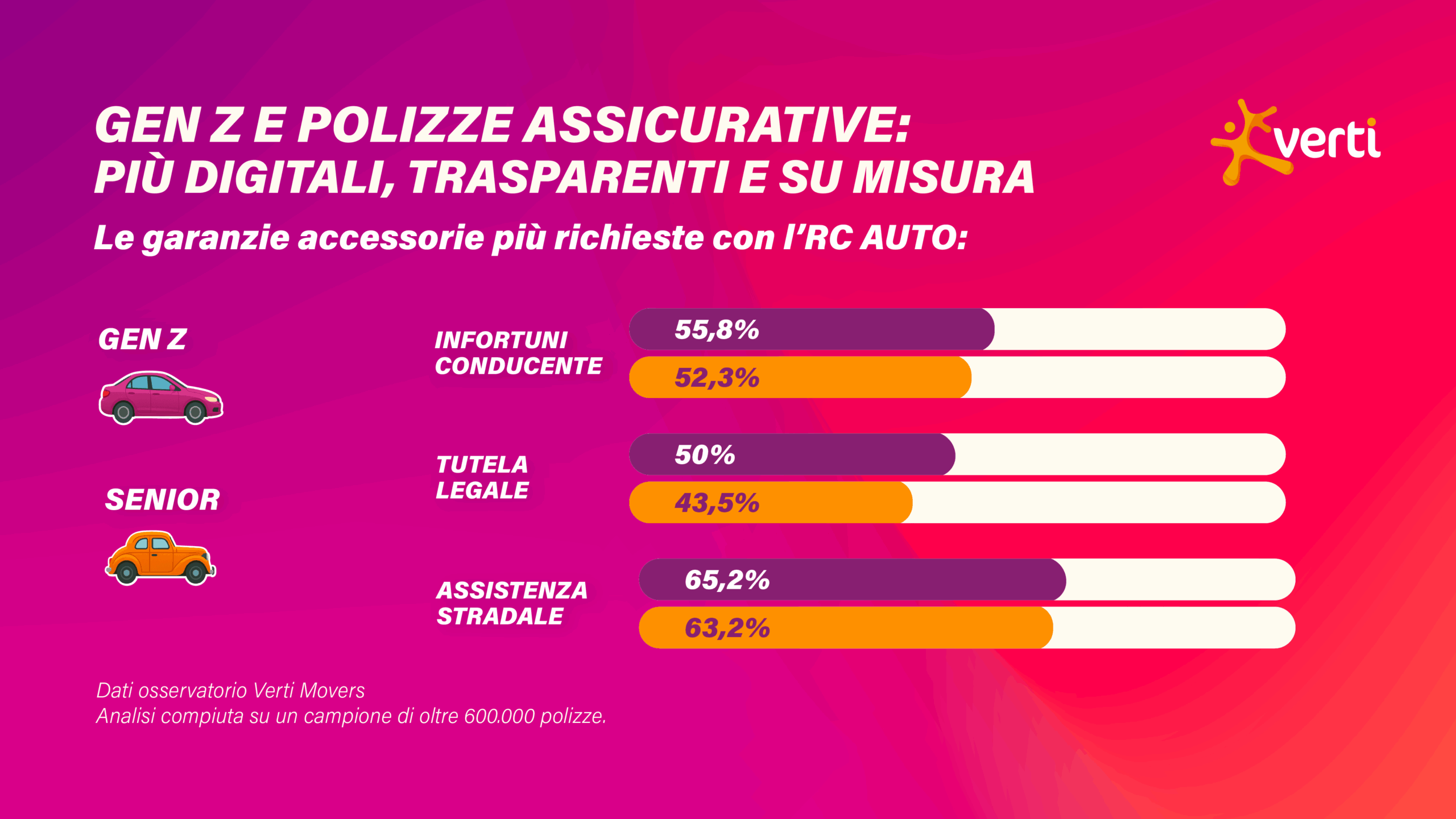 “Le nuove generazioni vivono in contesti tecnologici, sociali ed economici profondamente diversi rispetto anche solo ad una generazione precedente e questo incide profondamente sul loro modo di intendere le assicurazioni” commenta Marco Buccigrossi, Business Director di Verti Assicurazioni che continua “secondo recenti ricerche i giovani italiani mostrano la più bassa penetrazione assicurativa rispetto ai coetanei europei con il 59% degli assicurati in Italia rispetto al 73% del resto d’Europa[1] e questo deve portarci a riflettere su come evolvere per intercettare le loro necessità: in primis la realizzazione di prodotti maggiormente integrati e personalizzabili sulla scia delle embedded insurance con cui mostrano molta più dimestichezza e fiducia. Bisogna poi unire una maggiore chiarezza e trasparenza nel comunicare prodotti complessi come le polizze assicurative per aumentare la loro consapevolezza insieme a un servizio digitale sempre più efficiente e a portata di mano che si dimostra la chiave di volta per intercettare i futuri assicurati.”