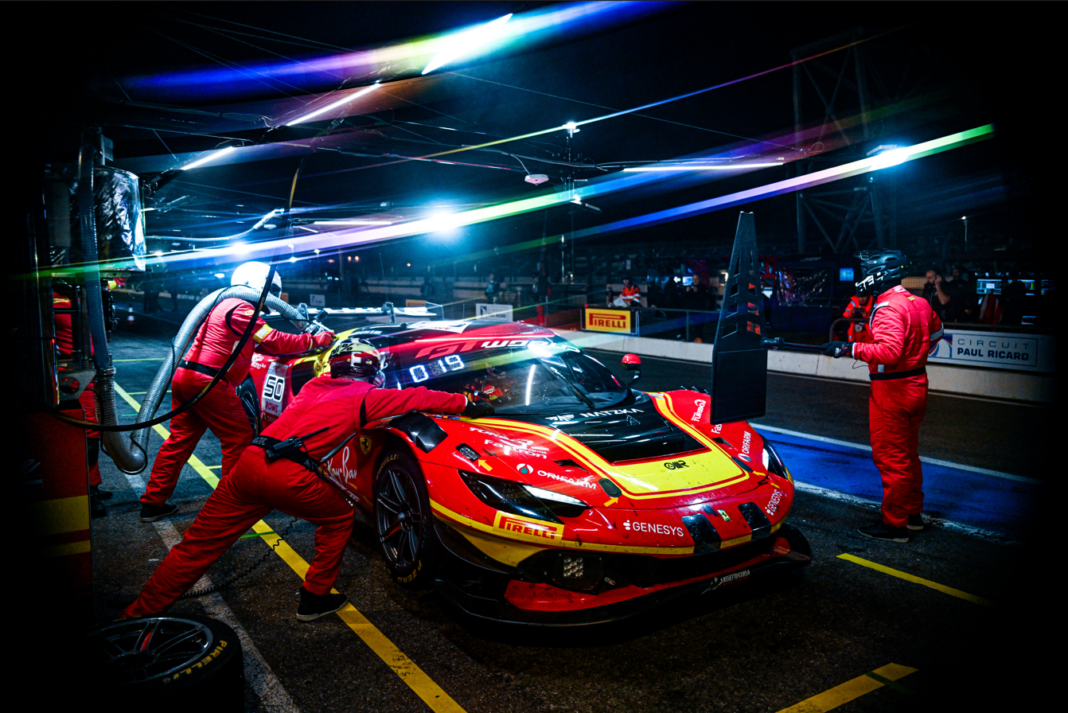 Il fine settimana in terra francese ha rappresentato una sfida importante, con le Ferrari chiamate a confrontarsi con un layout, quello del Paul Ricard, poco favorevole alle loro caratteristiche. Gli equipaggi hanno comunque dato prova di determinazione, portando a termine una gara solida accumulando esperienza preziosa. La corsa si è sviluppata in modo lineare, con la Safety Car entrata in azione solo nel corso del primo giro e nell’ultima ora, dopo un prolungato periodo di Full Course Yellow. La gara iniziata alle 18.00 del tardo pomeriggio di sabato 11 aprile con una temperatura di 21,5°C è terminata alla mezzanotte con 12°C.